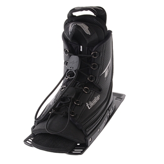 One of the biggest differences with the T-Factors is that they are a front-lace binding. This enhances the binding in two ways: It allows for a much wider space to open up when putting the binding on, and it allows for a more natural, uninhibited flex to the rear from the apex of the turn into the acceleration out of the turn. Laces in the back make the rear flex stiffer, and this can cause the tip of the ski to rise out of the turns. With the rear-lace binding the flex allows for some shift in body weight out of the finish of the turns, so even if you do fall slightly back before acceleration the tip of the ski will not rise out of the water. With the whole ski in the water there is no delay in acceleration, and the edge control of the ski is more secure.